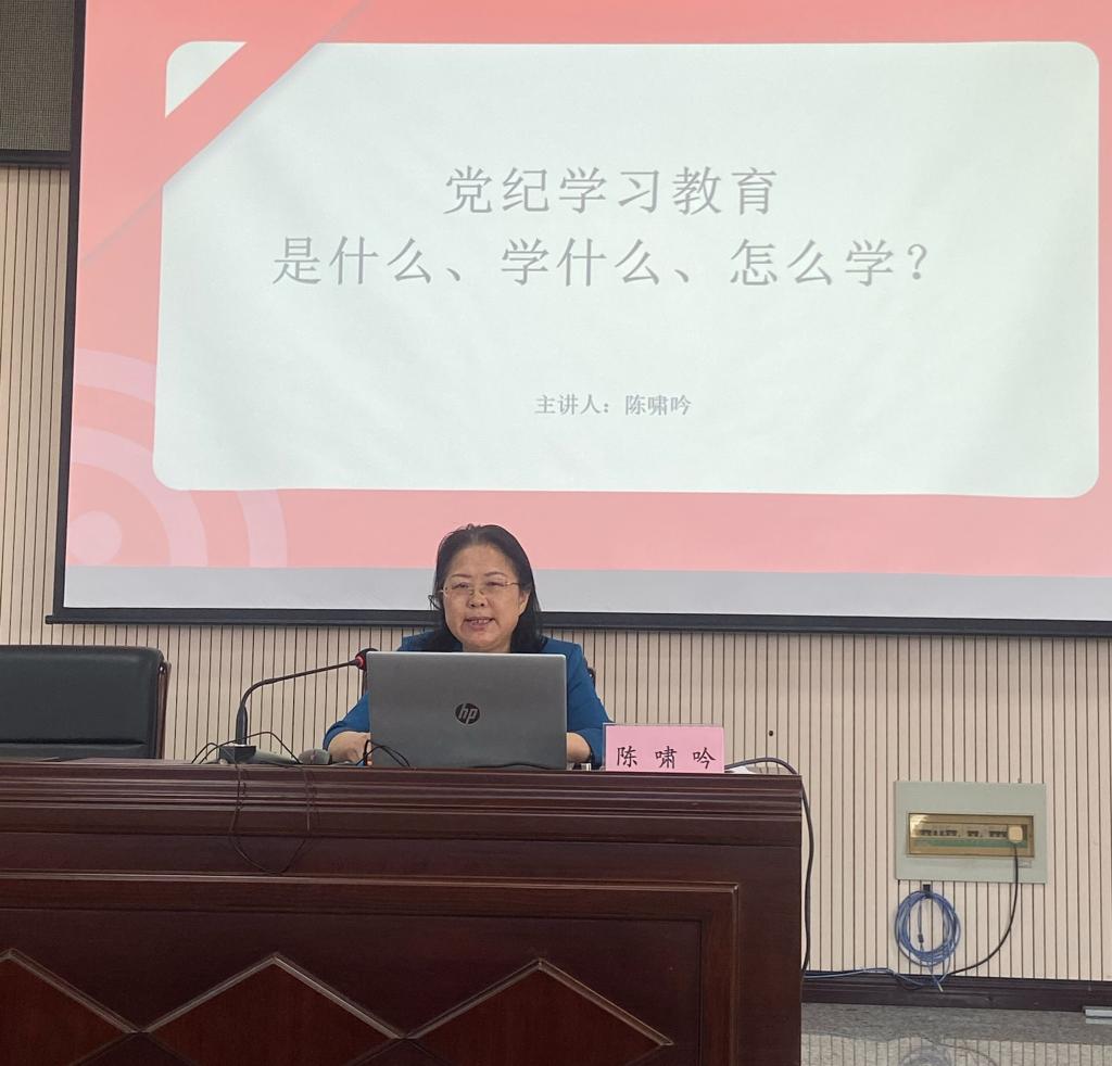 会上,陈啸吟作党纪学习教育动员部署,并以“党纪学习教育--是什么?学什么?怎么学”为主题作专题辅导,从党纪开展时间、重要意义、开展目的、目标要求、学习重点、工作要求、传达学习会议精神这七个方面进行讲解,强调要压实领导责任、加强宣传力度,坚持两手抓两促进。