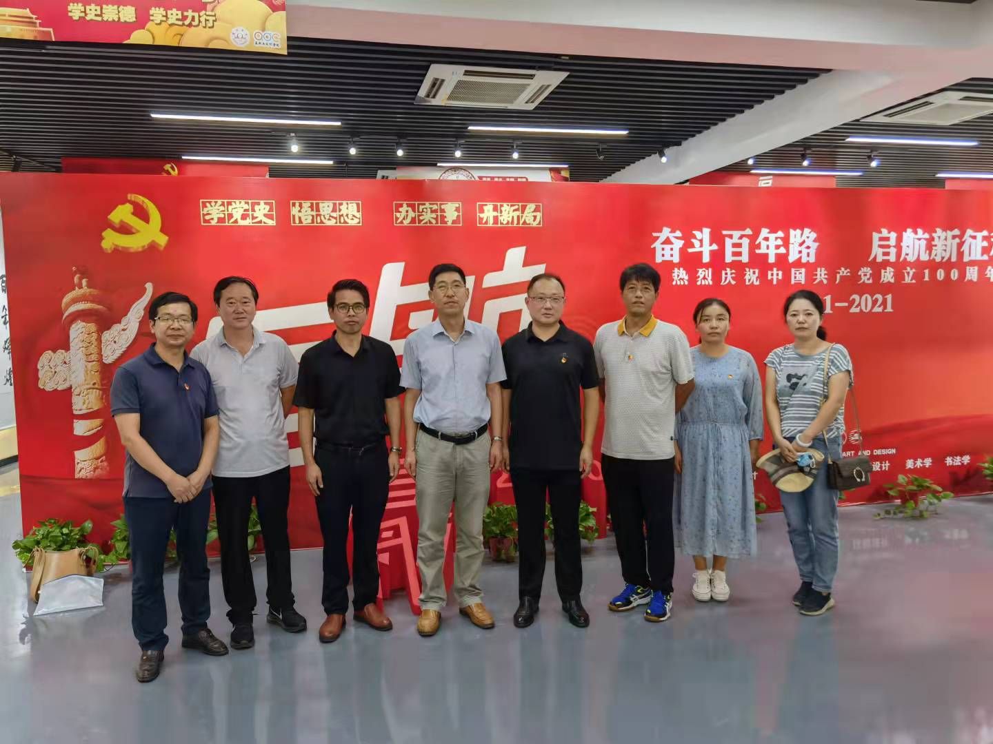 继续教育学院党支部与美术与设计学院党委在艺术楼展厅开展了“奋斗百年路启航新征程——建党100周年珍品展”参观学习、共过“主题党日”活动。美术与设计学院党委书记陈述立、美术与设计学院党委副书记、院长许兴海、继续教育学院院长兼党支部书记甘守飞、美术与设计学院党委副书记、纪委书记边洪强及党员们参加了此次活动。