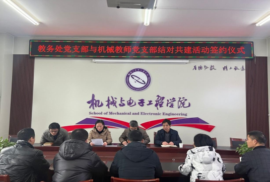 12月15日上午,教务处党支部与机械教师党支部在机械与电子工程学院会议室举行了支部共建签约仪式。机械与电子工程学院党委书记杨杰、副书记房爱东、机械教师党支部书记何康、教务党支部书记王红艳和支部委员出席本次活动,活动由杨杰主持。