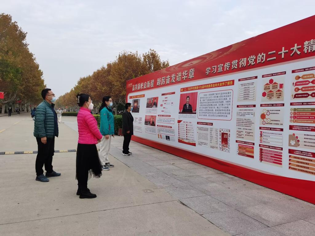 集中学习结束后,支部成员前往图书馆东侧广场参观《学习贯彻党的二十大精神系列展板》,进一步深刻领悟报告的丰富内涵和精神实质。