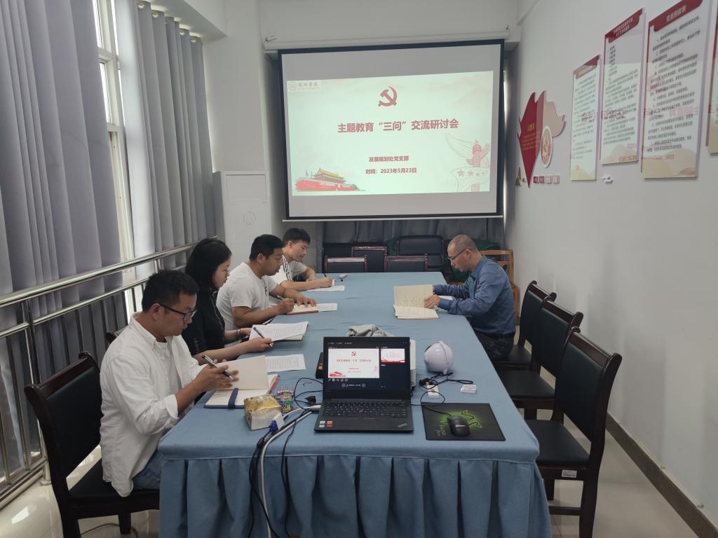 为推动学习贯彻习近平新时代中国特色社会主义思想主题教育持续走深走实,牢牢把握习近平新时代中国特色社会主义思想的世界观和方法论,5月23日,发规处党支部在逸夫楼A602召开党员主题教育“三问”交流研讨会,引导部门党员干部立足本职岗位深入学习思考。会议由发规处党支部书记董全德主持。