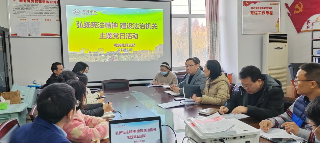 为提高全体党员宪法法律意识,弘扬爱国主义精神、培育爱国主义情怀,12月6日,教务处党支部开展了“弘扬宪法精神 建设法治机关”主题党日活动。