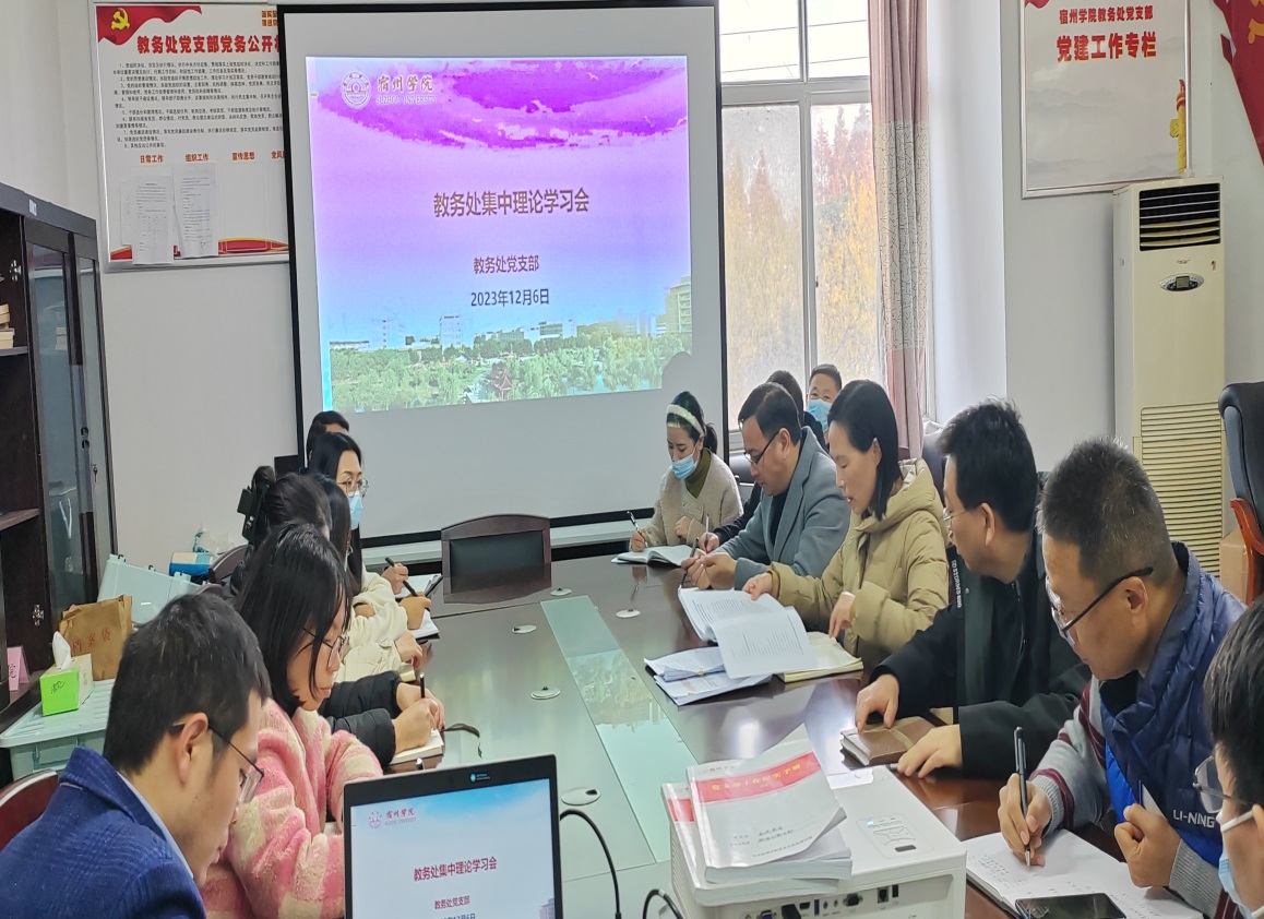 12月6日,教务处党支部在逸夫楼A202会议室召开十二月份政治理论学习会。会议由党支部书记王红艳主持,党支部全体成员参加会议。
